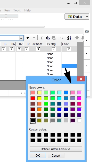 Specify a color for a message as shown in Figure 1. This color will be visible in Messages view when the message gets identified by Vehicle Spy.