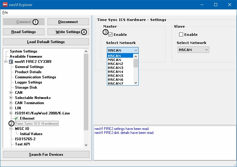 Scroll down the list of options inside of the device and find the option labeled "Time Sync ICS Hardware" (Figure 1:) Click on this option and set it to Master (Figure 1: