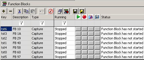 Open the Function Blocks screen on the main menu bar by selecting "Scripting and Automation" and then Function Blocks. Click the "+" button and select the desired function block type to add a function block. One function block per ECU is needed, so add seven Capture type (