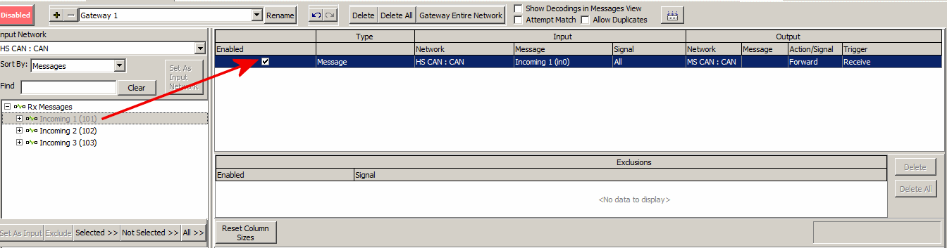 Select Messages to Add to the Gateway: