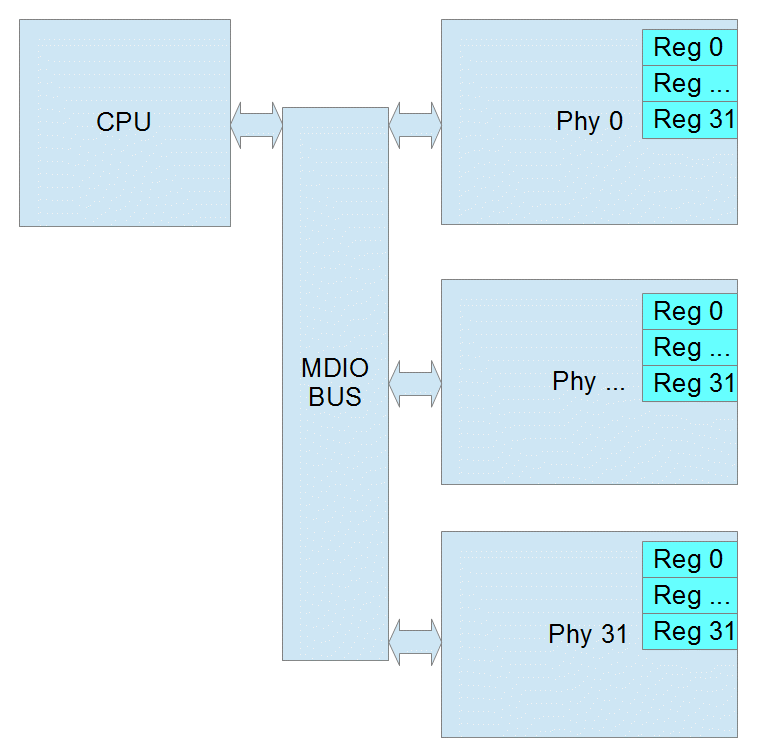 The initial protocol, IEEE 802.3 Clause 22, was designed to read or write 32 registers within 32 devices. Each read/write is done in one operation.