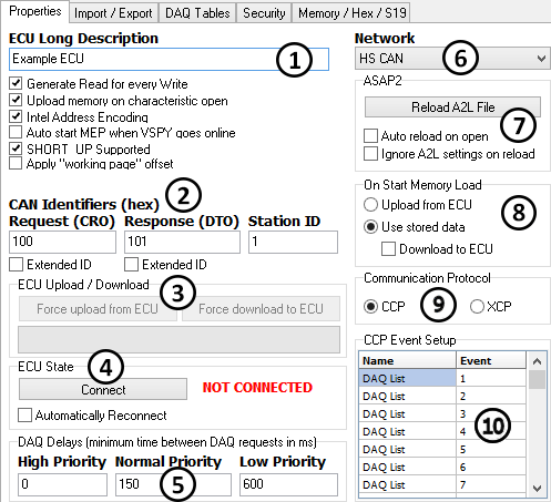 Select between CCP (CAN Calibration Protocol) or XCP (Universal Calibration Protocol). Each protocol has a command set and requirements established by ASAM specifications that define the link between Vehicle Spy MEP and the ECU.