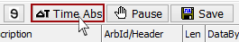 Relative time stamping is the default in Vehicle Spy. To switch to absolute time stamping, click the Time Abs button (Figure 1) in the Messages view top toolbar. When the button is depressed, absolute time stamping is displayed. To switch back to relative time stamping, simply press the button again. Tapping predefined function key F3 then A will also switch timestamp modes.