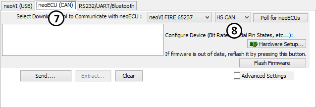 Some hardware devices support loading CoreMini Scripts over CAN, neoVI ECU would be an example. CoreMini scripts are sent to these types of devices using the "neoECU (CAN)" (Figure 3: