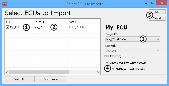 ). Some ODX files have Diagnostic Jobs built in. Import options for diagnostic jobs is shown under Jobs Importing (Figure 2: