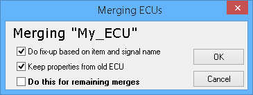 For each ECU with data to import, a Merging dialog will appear (Figure 3). This will ask how to add this new data. The options are explained below: