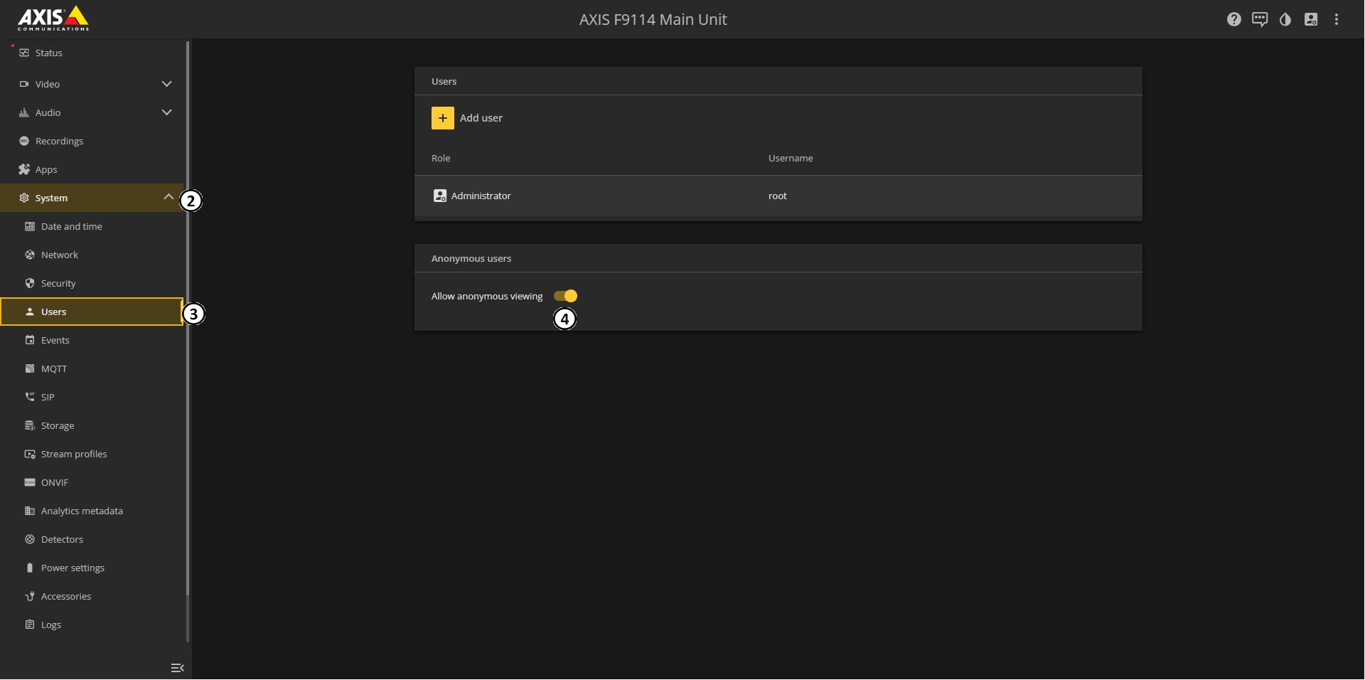 2. Select the Camera and Enable Anonymous Login: