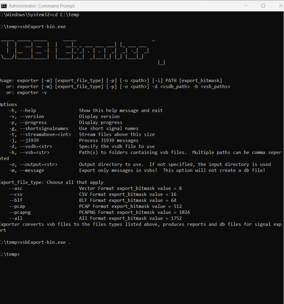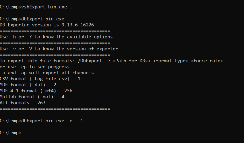 #### Converting VSDB to MDF, Matlab CSV using Command Prompt in Windows