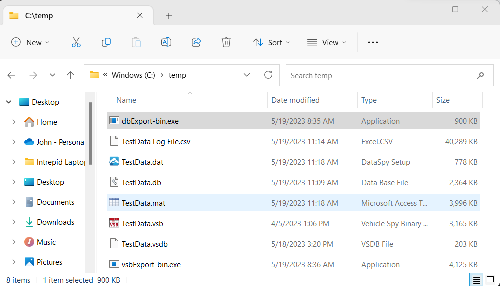 6. Convert TestData.db to CSV, MDF or Matlab format: