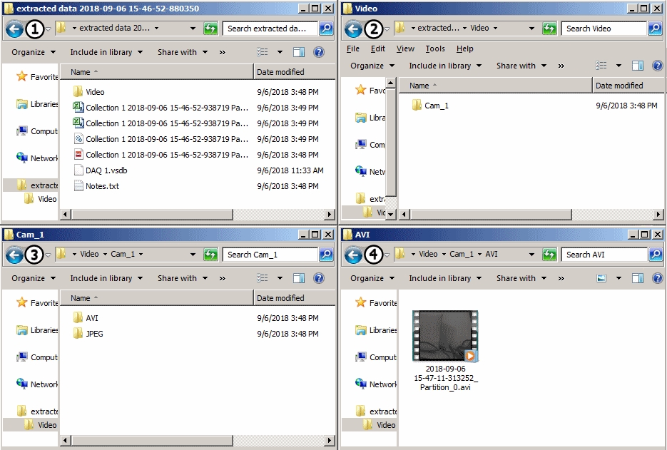 In the Extracted Data folder, click on Video, then on Cam_X (X will be the number you assigned to 192.168.2.X), then on AVI. This is the final video from the logged video. From here, the video can be edited, saved, or whatever is required for the project.