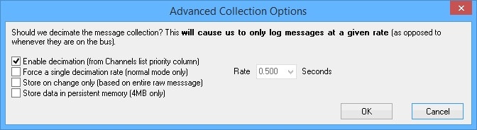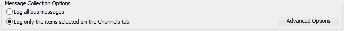 In VehicleScape DAQ Standalone Logging, the first set of options for the Message Capture Method deals with which messages to collect. Figure 1 shows this subsection of the options tab.