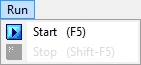 The Vehicle Spy Run main menu can be used to start and stop Vehicle Spy as shown in Figure 1.