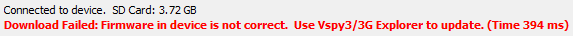 IMPORTANT: It is very important that the firmware in CoreMini capable device match what the software expects. If you try to load a CoreMini to a device with incorrect firmware a warning should be displayed at the bottom (Figure 4). This can be fixed by connecting to neoVI 3G Explorer or in Vehicle Spy 3 if "Enable Auto updates" is turned on under Tools -> Options. You can also use the Manual Reflash button in neoVI 3G Explorer. It is recommended to leave Enable Auto Update enabled.