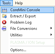 The CoreMini Console is a tool for loading CoreMini Scripts into supported hardware. Some applications for CoreMini Scripts could be ECU simulation, Data Logging, Hardware acceleration, and Gateways all ran without a PC. CoreMini Scripts start as Vehicle Spy 3 files. The CoreMini Console converts and loads the file into the supported hardware. The CoreMini Console is found under Tools -> Utilities -> CoreMini Console (figure 1)