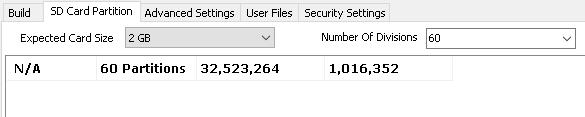 Sending the script to the hardware is done the same way as normal with one extra step. In the CoreMini Console, the SD Card Partition tab lets you configure the number of partitions to use. The example for this application note uses 60 partitions. Keep in mind that the more partitions used, the fewer number of messages that can be stored per partition.
