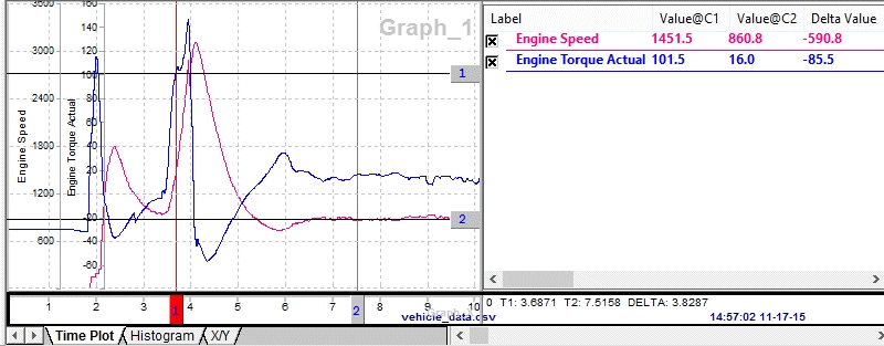 Difference in y-axis values between the cursors. (Value@C2 - Value@C1)