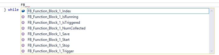 Figure 1: The C code project has full control of Vehicle Spy's function blocks - just type "FB_".