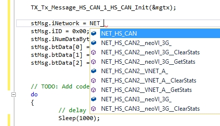 For each Network in Vehicle Spy there is an int variable. This variable is the number you use to reference a network. For example, the GenericMessage structure includes an iNetwork property. This indicates what network the message is from or will be transmitted to. All network indexes begin with the prefix NET_. Each network has statistics that you can access. You can access the statistics for a network with the GetStats function. You can reset the statistics with the ClearStats function.