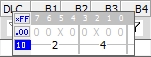 Vehicle Spy supports advanced pattern matching of incoming messages. In the Receive table, B1-B8 can have "don't care" symbols (X) at three different levels: