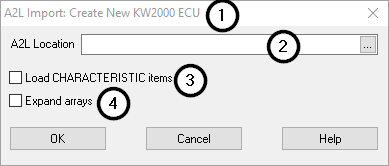 ) indicates what is happening. Here you will see if you're importing an A2L into an exsiting ECU, or if you are creating a new ECU.A2L Location: the full path to the A2L file you want to import. Click the elipsis (...) button to open a file picker dialog. (Figure 1: