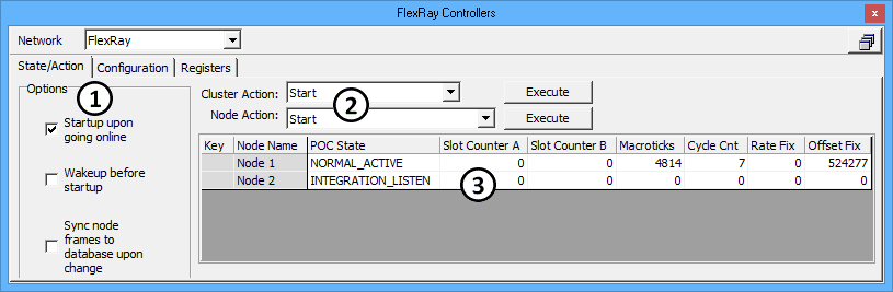 FlexRay Controllers: State/Action Tab