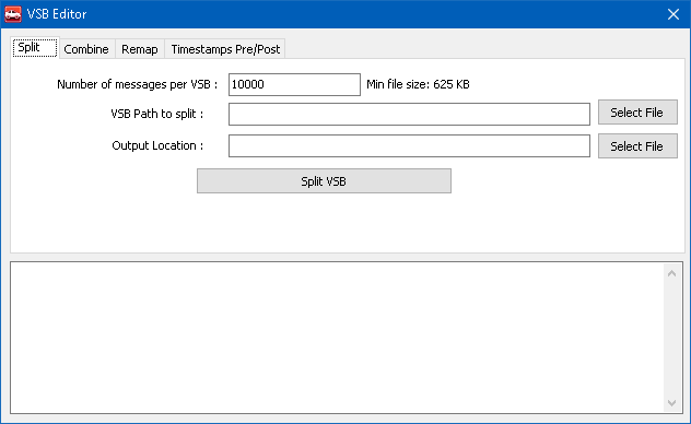 The bottom area shows the status of split actions being performed. Vehicle Spy puts the split VSB files in the same directory as the source file.Each split file name is the source file name appended with a sequence number.