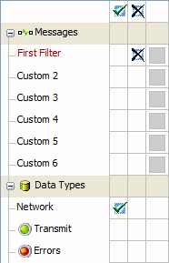 Select the Messages tab. When the panel opens, notice the Filter Bar that appears automatically on the left side. This is a convenient way to turn on and off all sorts of filters you may use in your applications. Notice the "Custom 1" heading in the list and select the small blank box to the right of the heading (Figure 1: