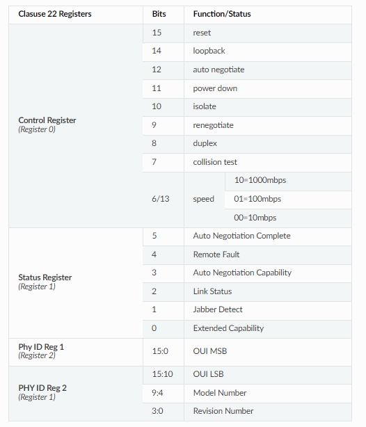 The manufacturerβs data sheet of the PHY. This is needed to know the function of the registers and the format of their contents. These data sheets are usually confidential and require and NDA (Non Disclosure Agreement) with the manufacturer.