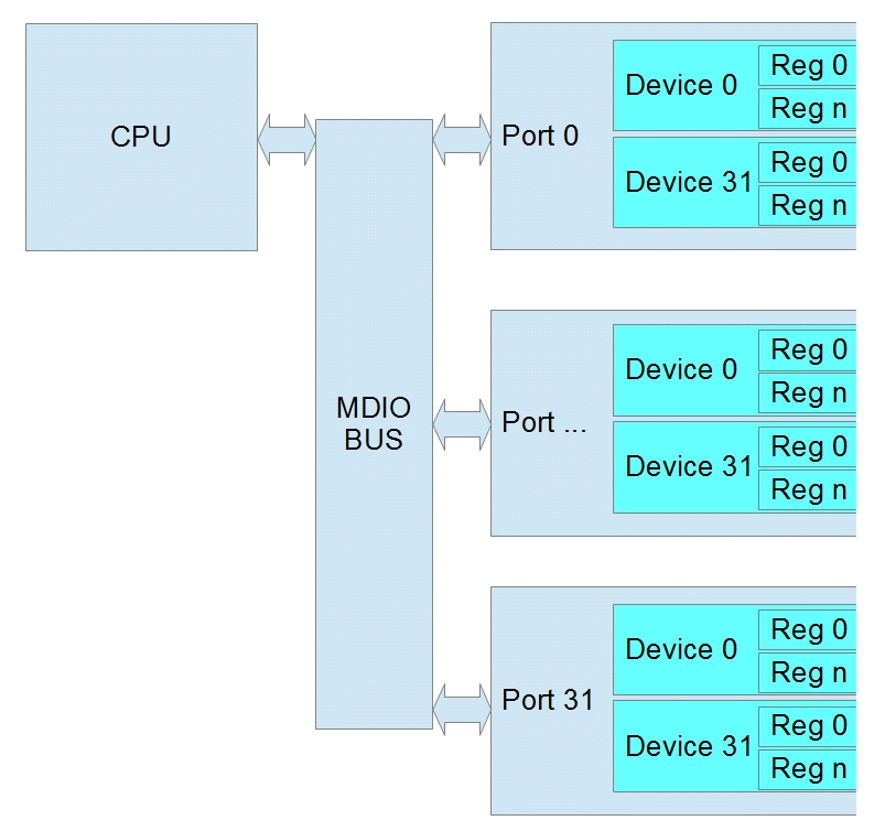 The initial protocol, IEEE 802.3 Clause 22, was designed to read or write 32 registers within 32 devices. Each read/write is done in one operation.