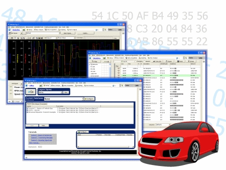 Vehicle Spy software for vehicle network electronics including the following communication protocols: CAN - J1850 - GMLAN - GM Class 2 - ISO9141 - Keyword 2000 - Ford - SCP - OBDII - J1587 - J1939 - Ford UBP - LIN and others.