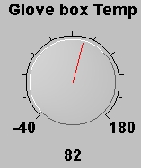 A Knob control allows data to be input using a graphical representation of a physical knob. The pointer on the knob can be clicked and dragged to a particular location in order to select a value, or the target spot can be clicked and the pointer will jump to that location.