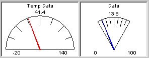 Meter controls display data using a meter face. The actual numeric value of the signal linked to the control is shown at the top, while the needle points to a representation of the current value in a manner similar to that of an automobile gauge (Figure 1). The range of displayed values is controlled through custom settings.