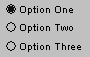 Radio buttons allow the user of a graphical panel to select from among a small list of available options, much like the buttons on old car stereos. These controls are usually used in groups by linking multiple radio buttons to the same signal. When one radio button tied to a particular signal is clicked, the value associated with that button is assigned to the signal. At the same time, any other radio buttons linked to that signal are de-selected, so that only one can ever be selected at a time. An example of a cluster of three radio buttons can be seen in Figure 1.