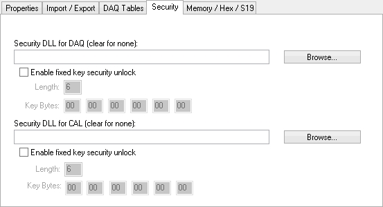 The MEP Setup Security tab (Figure 1) lets you choose *.DLL files to unlock an ECU for DAQ'ing and calibration development. Simply click the Browse button and select the *.DLL file. Alternatively, you can also manually enter a fixed security unlock key.