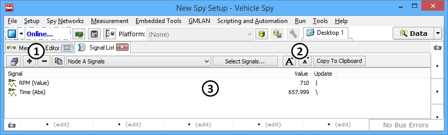 Use the Signal List to display Vehicle Spy signal values in real time (Figure 1).