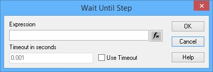 To use this feature, enter a length of time in the Timeout in seconds box, and check the Use Timeout box. If the box is not checked, the Timeout in seconds value will be ignored, and the script will only continue if the expression evaluates as True.