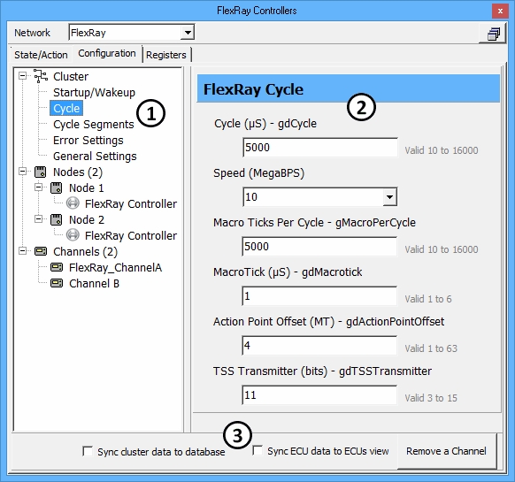 FlexRay Controllers: Configuration Tab