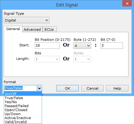 For digital signals, if the format list does not have what is needed (like Right/Left), type in any desired format that corresponds with binary 1/0.