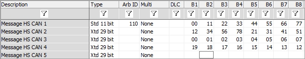Columns B1 to B8 can specify the message data bytes directly (Figure 1).