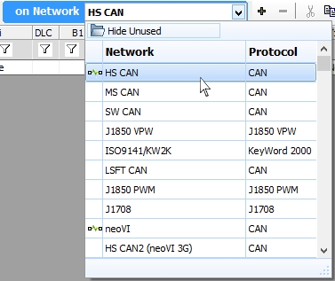 Each Network has different Messages and Signals. The Network the Messages Editor table is referring to is specified by the On Network drop down located at the top of Messages Editor view (Figure 1). Changing this dropdown will show the messages for this network.