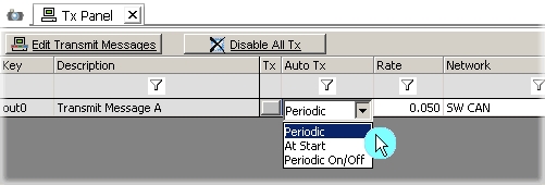 Periodic - Transmits the message at the rate setup in the Rate column.If the rate is zero (None) automatic transmit is disabled.