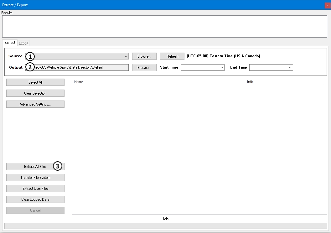 In Vehicle Spy, select Tools -> Utilities -> Extract / Export to open the extract function. Figure 1 shows this view.