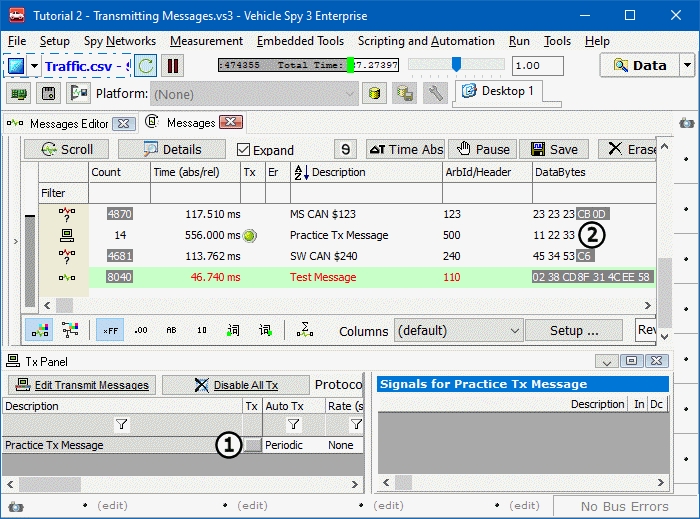 In static mode in the Messages view Practice Tx Message should now appear in the list of messages (Figure 1: